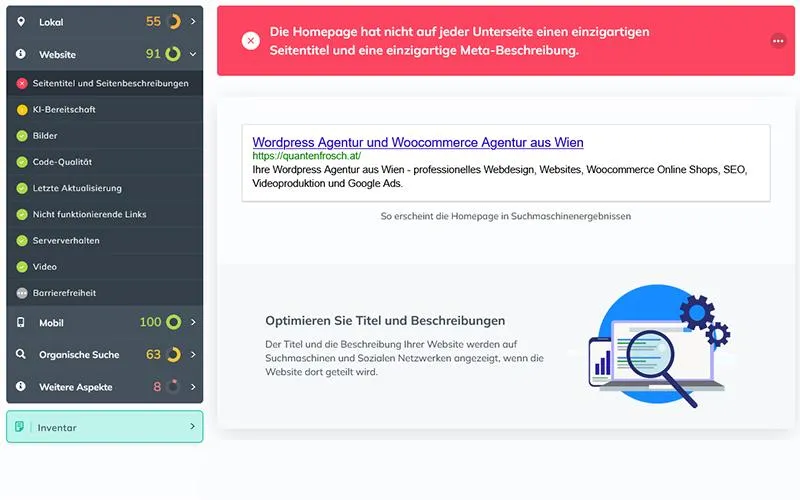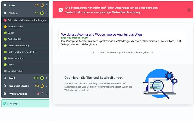 Fordern Sie Ihren Website Audit an - 100% kostenlos und völlig unverbindlich.