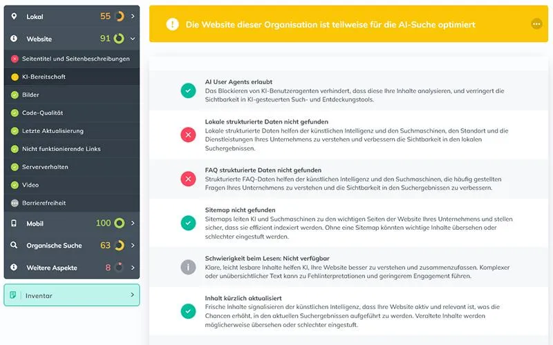 Der technische Zustand beeinflusst nicht nur das Nutzererlebnis, sondern auch die allgemeine Bewertung Ihrer Webpräsenz von klassischen Suchmaschinen und KIs. Google und Künstliche Intelligenz bewerten technisch einwandfreie Websites besser.