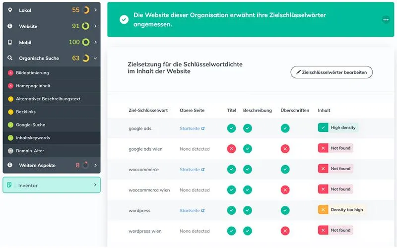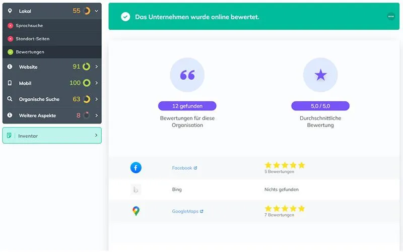 Verschaffen Sie sich eine detailreichen Überblick über den aktuellen Stand. Wie schneidet Ihre Online-Präsenz im Vergleich zu Ihren MItbewerbern ab?
